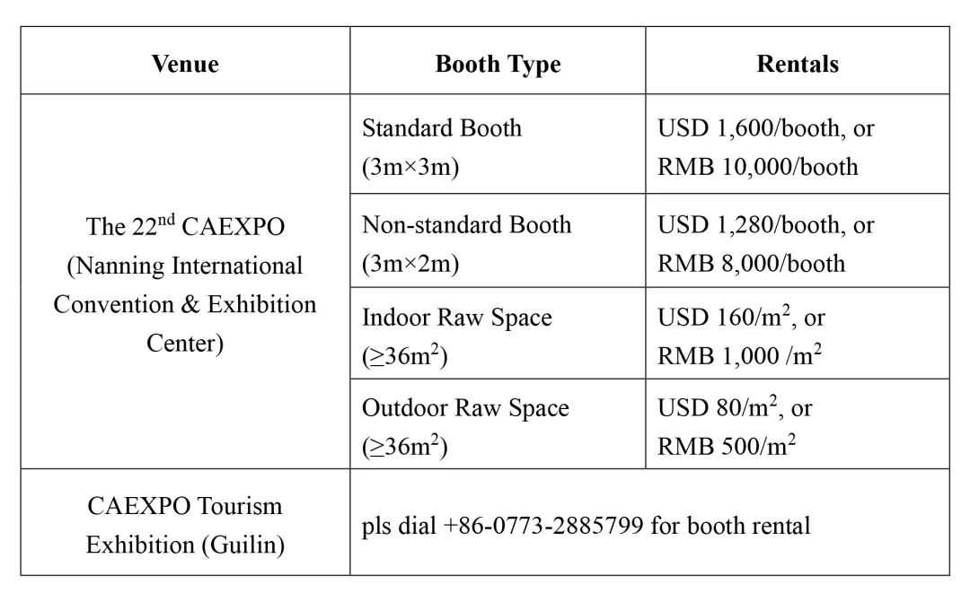 Please make application at the CAEXPO official website (https://www.caexpo.org.cn). For more information, please dial +86-771—8028899, the CAEXPO Hotline.