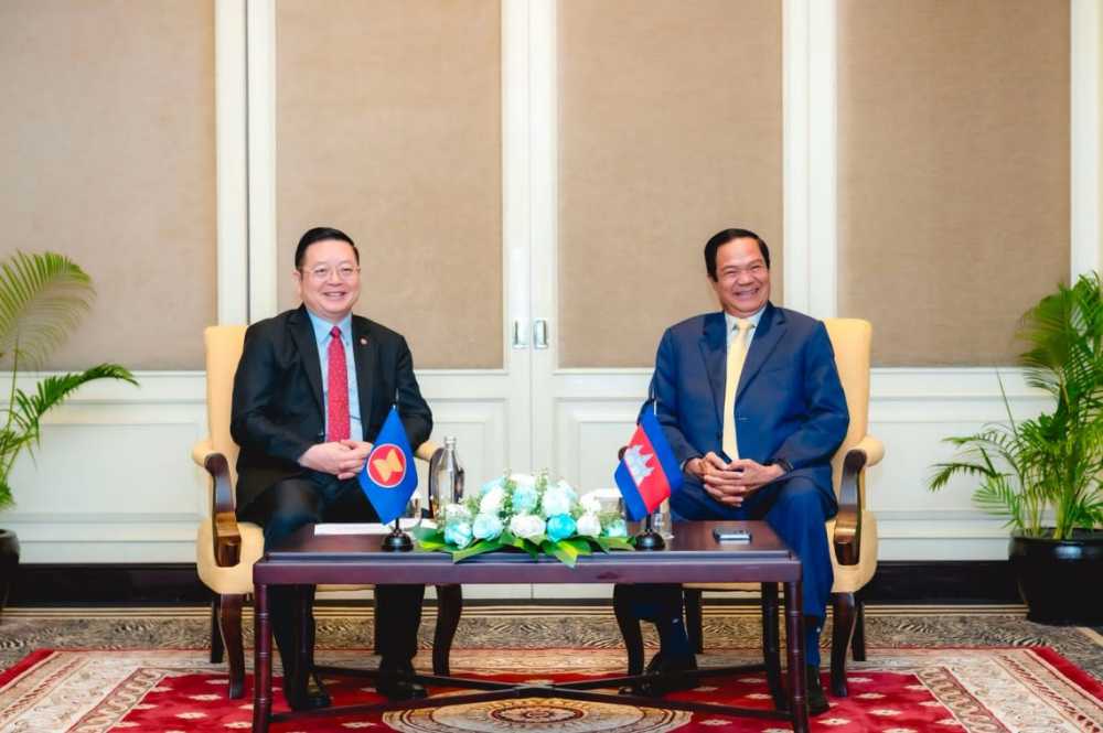 Phnom Penh, October 14 (AseanAll) — On October 14, 2025,Secretary-General of ASEAN, Dr. Kao Kim Hourn met with Kitte Sangahak Bandith Kun Kim, Senior Minister in Charge of Special Missions, First Vice President of the National Committee for Disaster Management (NCDM) of the Kingdom of Cambodia and Chair of ASEAN Ministerial Meeting on Disaster Management (AMMDM) 2025, on the sidelines of the 13th ASEAN Ministerial Meeting on Disaster Management (AMMDM) and the 14th Meeting of the Conference of Parties (COP) to the ASEAN Agreement on Disaster Management and Emergency Response (AADMER), in Phnom Penh, Cambodia.