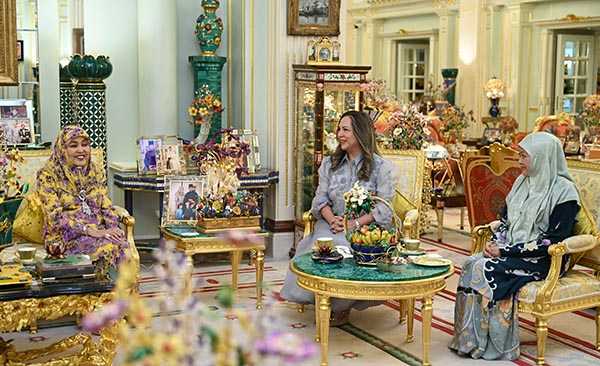 Meanwhile, in another part of Istana Nurul Iman, Her Majesty Duli Raja Isteri Pengiran Anak Hajah Saleha binti Al-Marhum Pengiran Pemancha Pengiran Anak Haji Mohamed Alam received in audience Madam Melody Valeros, spouse of the Chief of Staff of the Armed Forces of the Philippines.