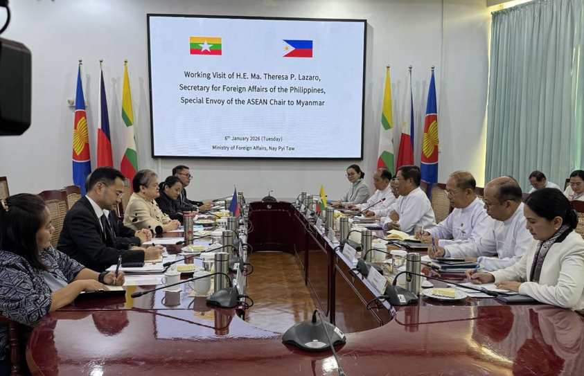 Nay Pyi Taw, January 7 (AseanAll) — Philippine Secretary of Foreign Affairs Ma. Theresa P. Lazaro, who was appointed by Philippine President Ferdinand R. Marcos Jr. as Special Envoy of the ASEAN Chair on Myanmar, visited Myanmar to meet with the senior leadership of the State Security and Peace Commission in Nay Pyi Taw on 06 January 2026,according to the Department of Foreign Affairs of the Philippines.