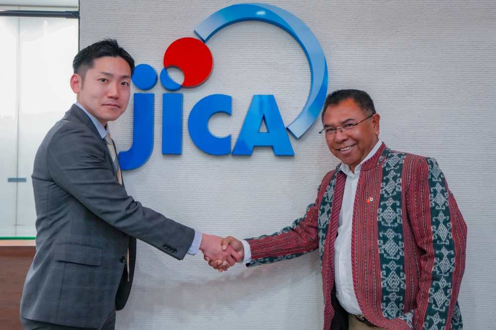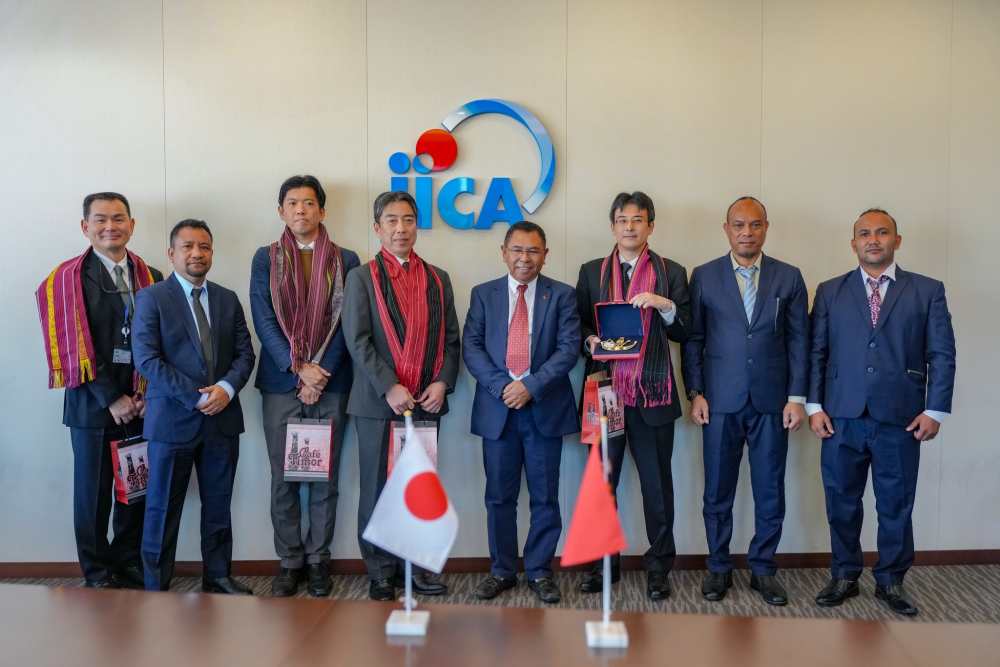The visit included a delegation comprising the Chief of Staff of the Ministry of Public Works of Timor-Leste, Cristóvão Fausto Guterres; the Director-General of Roads, Bridges, and Flood Control, Nene Lobato; and the Coordinator of the Inspection, Verification, and Payment Unit, Aleixo Amaral do Carmo. It was accompanied by the Ambassador of Timor-Leste in Tokyo, Maria Terezinha da Silva Viegas.
