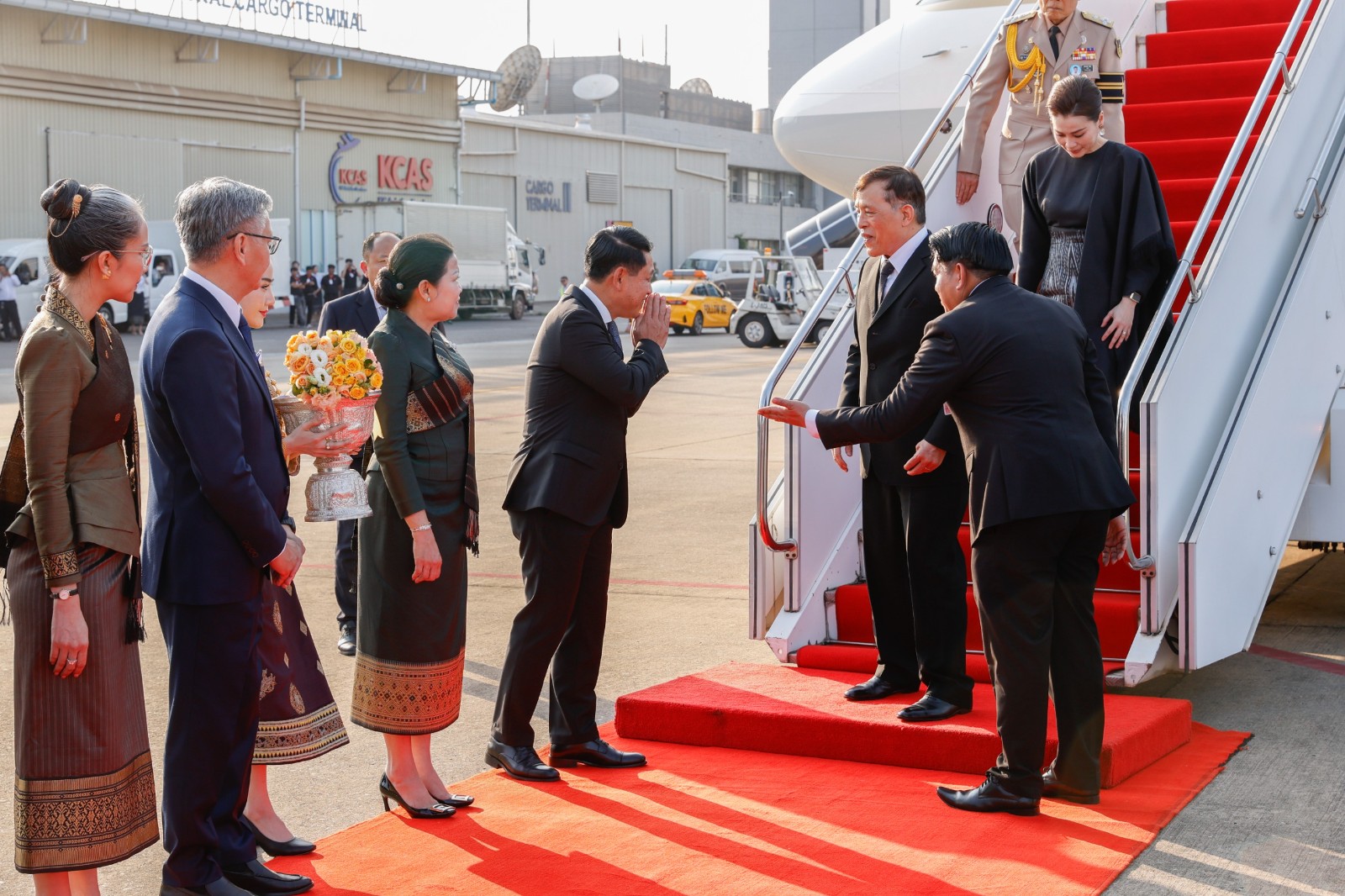 An official welcoming ceremony was held on the morning of 17 March at the Presidential Palace in Vientiane, where Their Majesties were received with full honours. This was followed by formal bilateral talks between President Thongloun Sisoulith and Their Majesties, alongside high-level delegations from both sides.