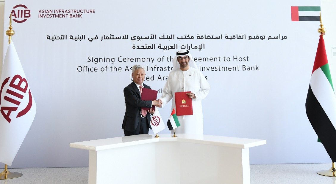 Abu Dhabi,April 20 (AseanAll) — On April 19 ,the Asian Infrastructure Investment Bank (AIIB) and the United Arab Emirates (UAE) signed a host member agreement to officially open in Abu Dhabi the Bank’s first overseas office, an Interim Operational Hub (the Hub). Jin Liqun, President and Chair of the Board of Directors of AIIB, joined His Excellency Dr. Sultan Al Jaber, Minister of Industry and Advanced Technology and UAE Governor of AIIB, during the signing ceremony in Abu Dhabi.