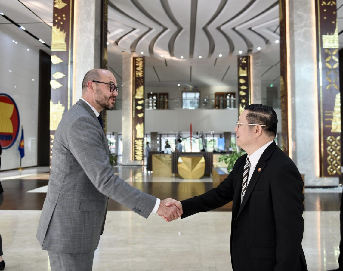 On May 16, 2023, at the ASEAN Secretariat, Ambassador of Australia to ASEAN Will Nankervis briefed Secretary-General of ASEAN Dr Kao Kim Hourn on the preparations for the upcoming Quad Leaders’ Summit to be held in Sydney, Australia on 24 May.