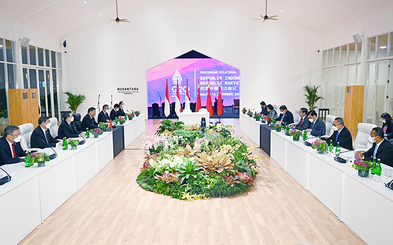 President Xi underscored that as representatives of major developing countries and emerging markets, China and Indonesia must uphold true multilateralism, focus on key areas such as poverty alleviation, food security and development-oriented financing, build signature projects of the Global Development Initiative, contribute to stronger, greener and healthier global development, and foster a more just and equitable global governance system. China supports Indonesia’s ASEAN rotating Chairmanship next year and efforts to focus on development and cooperation, foster a peaceful, safe and secure, prosperous, beautiful and amicable home in the region, and build an even closer China-ASEAN community with a shared future.