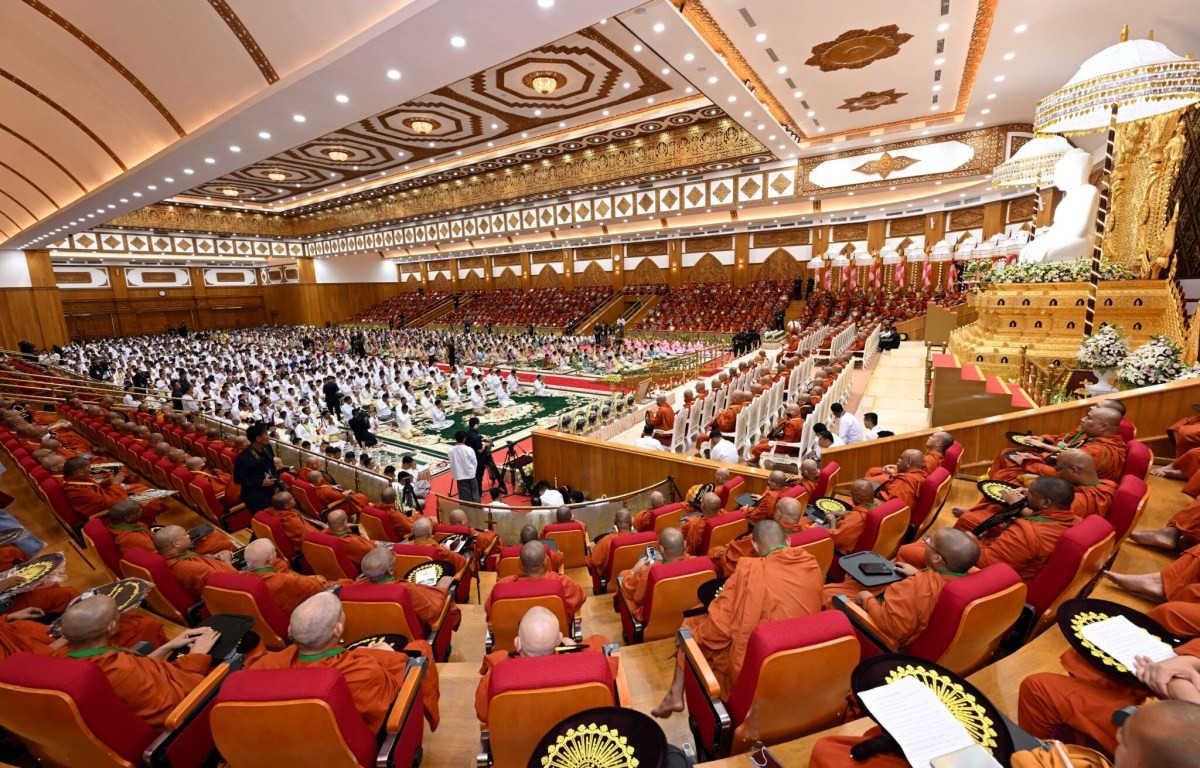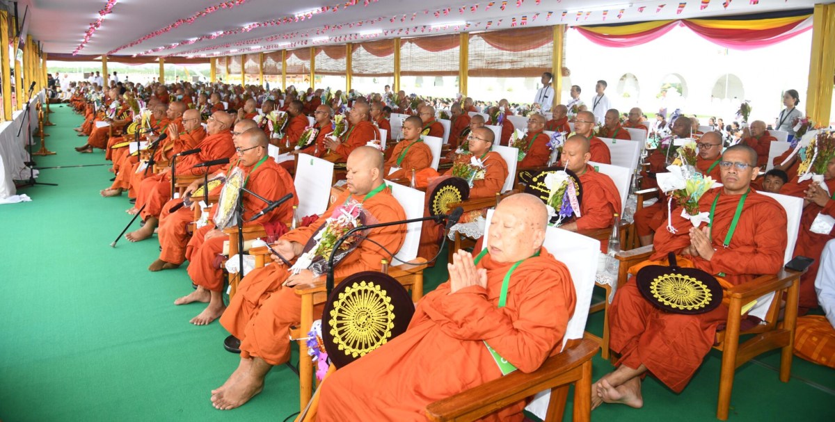 A total of 855 members of the Sangha were ushered into four pavilions on the platform of the Image. A total of 12 members of the Sangha led by Pali Sayadaw were ushered to Mucalinda Lake and Sasana Beikman to consecrate the Buddha image, five other monks to Maravijaya Monastery, and nine other monks to Therasana venue.
