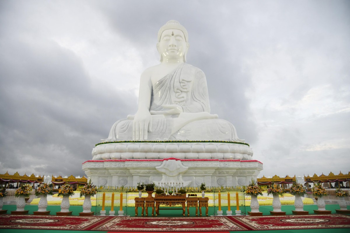 Nay Pyi Taw, August 2 (AseanAll) — The gala ceremonies of consecration for the Maravijaya Buddha Image which will be highest sitting marble Buddha Image in its kind on the world erecting in Dakkhinathiri Township, Union Territory Nay Pyi Taw, hoisting umbrella atop the stone inscription stupas and merits sharing was held in the morning on 1st August, 2023, full moon day of (Second Waso month), 1385 Myanmar Era.