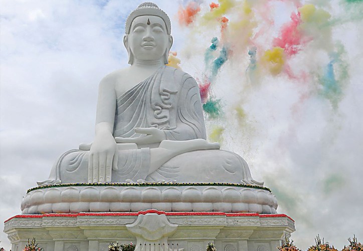 In his supplication, the Senior General said that the heaviest marble rocks for the image were conveyed along the longest waterway and the longest land road from Sagyin Hill to Ayeyawady River, then to Sameikkhon Port and then to Nay Pyi Taw passing through a new canal and new road starting from 3 July 2020. Seeking advice from members of the State Sangha Maha Nayaka Committee, it was considered to facilitate the park with the pagoda, monastery, lake, ordination hall, public rest houses and bridges. Tri Pitaka treatises were carved on the stone plaques in Pali and Romanized languages and kept in the park, and the Buddha image was entitled Maravijaya Buddha Image.