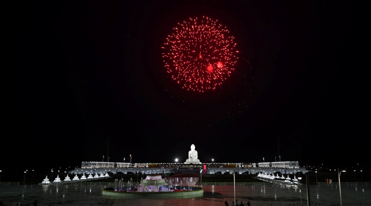 On the occasion, six members of the Sangha from Cambodia, 11 from Thailand, 10 from Nepal, 11 from Viet Nam, 10 from Bangladesh, six from Laos, 11 from Sri Lanka and five from India consecrated the Maravijaya Buddha Image. Likewise, members of the Sangha consecrated the image. State Ovadacariya 16th Shwegyin Sangharaja Chancellor of Sitagu International Buddhist Academies Abhidhaja Maha Rattha Guru Abhidhaja Agga Maha Saddhamma Jotika Dr Bhaddanta Nyanissara recited the victorious consecration verse, and the Buddha image was illuminated. Three venerable Sayadaws, the leading donor and well-wishers hoisted tiers of the golden umbrella, the bejewelled pennant-shaped vane and the bejewelled diamond orb atop the pagoda, four encircled pagodas and small pagodas on the stone plaque chambers respectively.