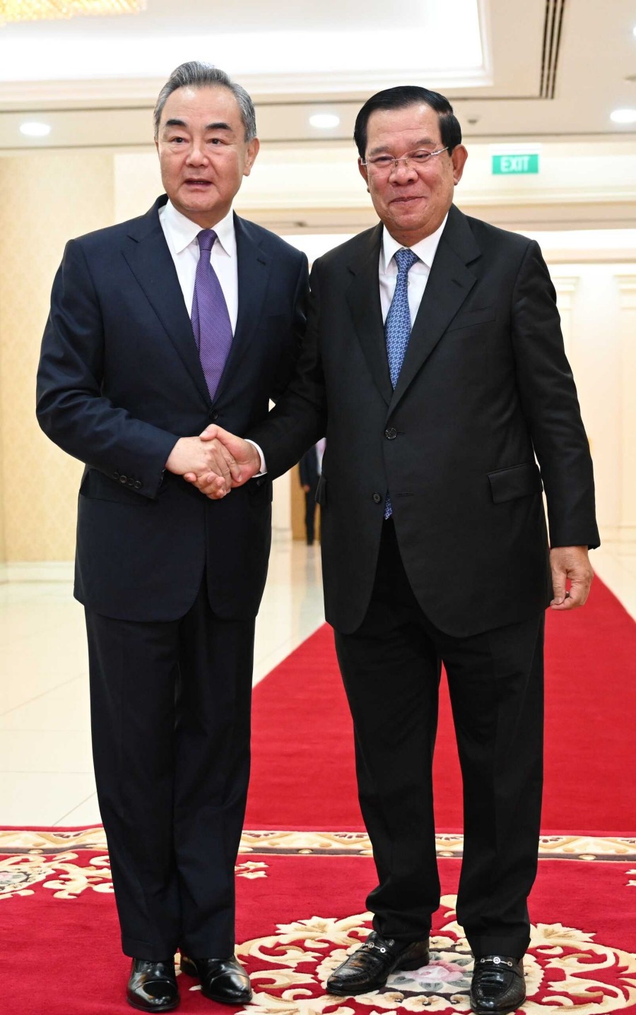 Wang Yi said that China highly appreciates Prime Minister Hun Sen's historic contribution to building the China-Cambodia community with a shared future, cherishes the deep mutual trust and profound friendship forged by the leaders of the two countries, and will, as always, stand with Cambodia, and firmly support Cambodia in following a development path suited to its national conditions, safeguarding national interests and dignity, and playing a bigger role on international and regional occasions.