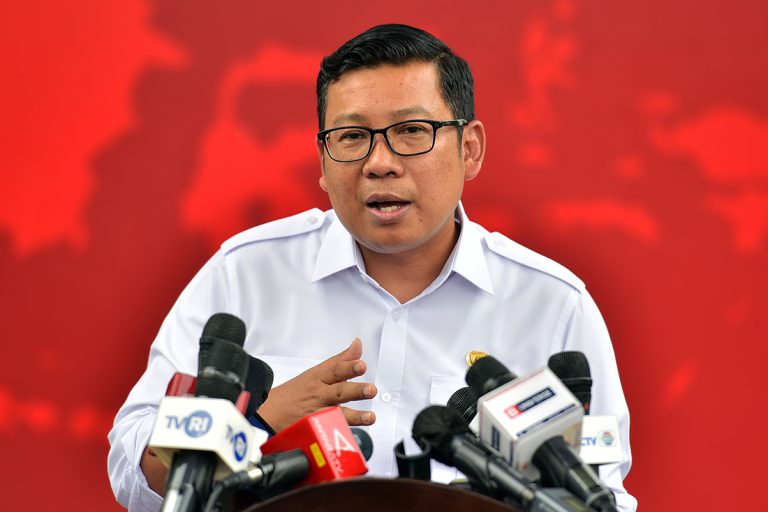 Head of the National Food Agency (Bapanas) Arief Prasetyo Adi delivers a press statement at the Presidential Palace compound, in Jakarta, on January 18, 2024.