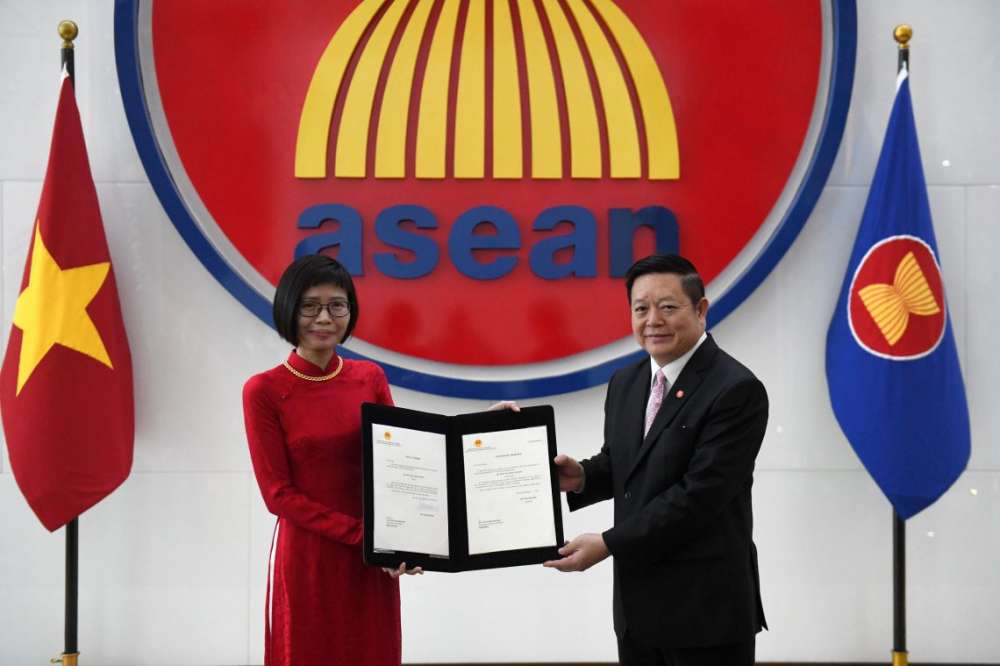 Jakarta, May 13 (AseanAll) — Ambassador Dr. Ton Thi Ngoc Huong presented her Letter of Credence as the Permanent Representative of the Socialist Republic of Viet Nam to ASEAN to the Secretary-General of ASEAN, Dr. Kao Kim Hourn, at the ASEAN Headquarters/ASEAN Secretariat on May 13, 2024.