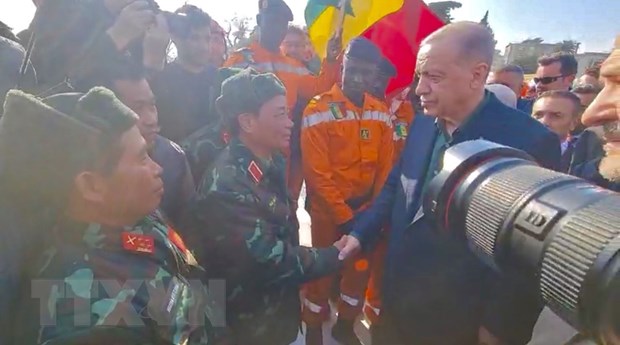 President of Türkiye Tayyip Erdogan meets Maj. Gen. Pham Van Ty, Deputy Chief of the Office of the National Committee for Incident and Disaster Response, Search and Rescue and Deputy Director of the Viet Nam People Army (VPA)'s Department of Search and Rescue, Antakya, Hatay, Turkey, February 20, 2023 - Photo: VNA