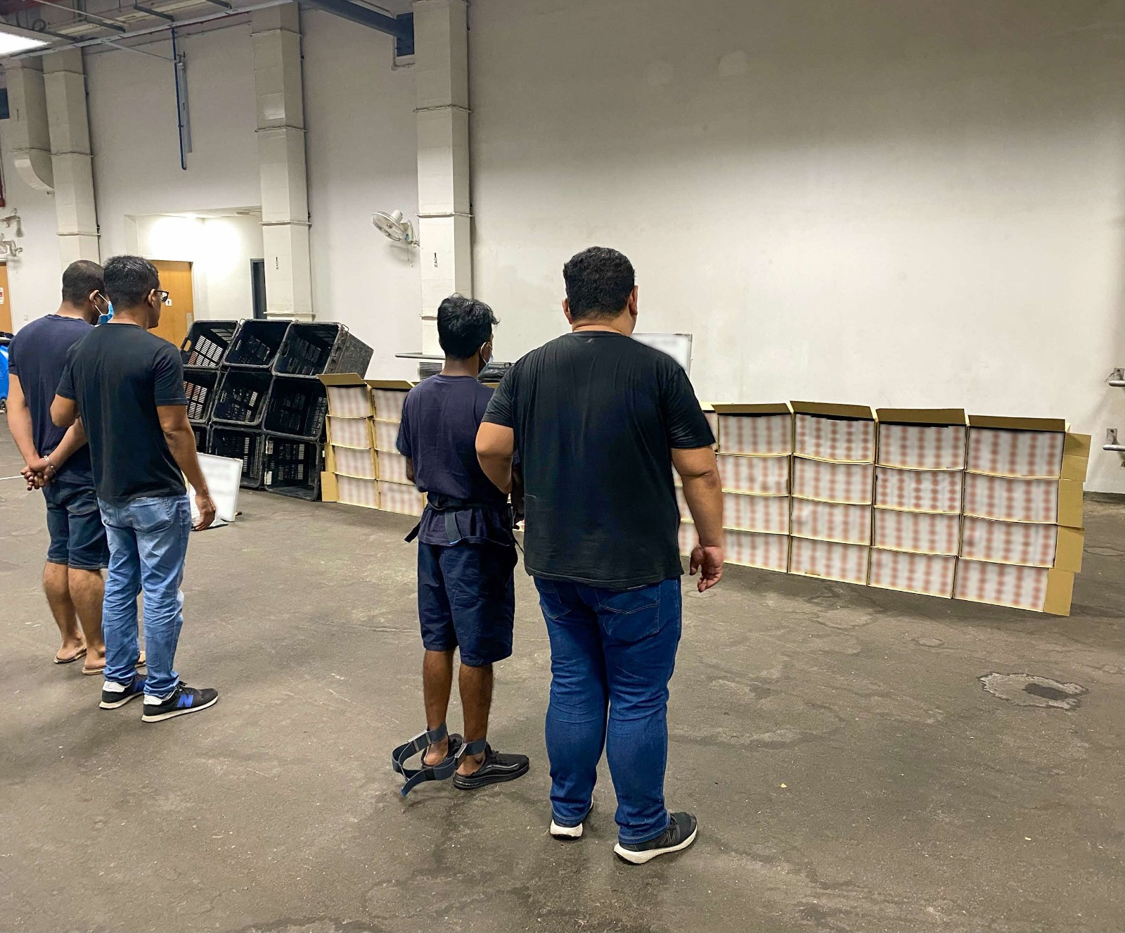 In an operation conducted at Gul Circle, Singapore Customs officers checked on two men near a vacant industrial building where one of them was seen climbing over the metal gate of the building. Both men attempted to flee the scene but were stopped by the officers. Officers searched a store unit in the property and uncovered 1,097 cartons of duty-unpaid cigarettes. Both men were arrested. Officers also uncovered another three cartons and 19 sticks of duty-unpaid cigarettes in the vicinity of Gul Circle and in one of the men’s belongings respectively.