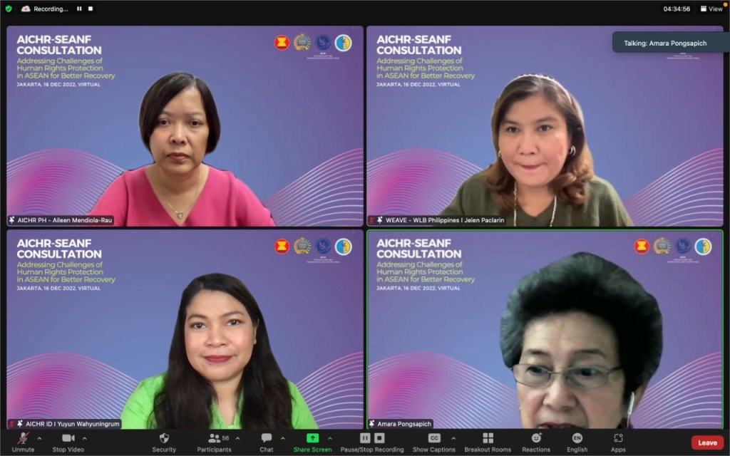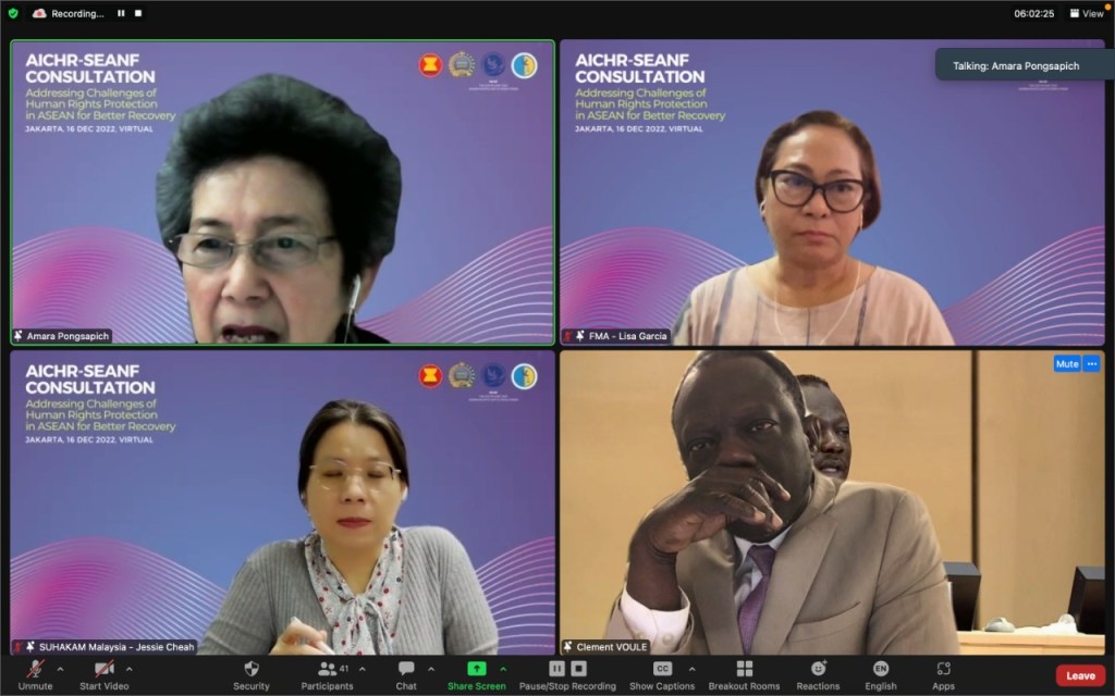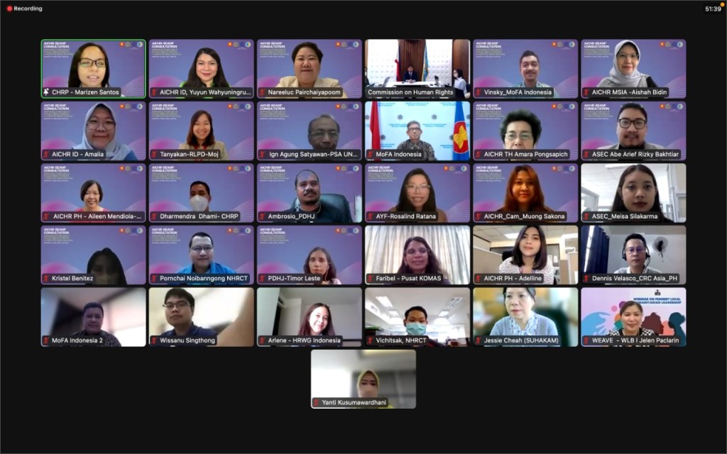 JAKARTA, 26 December 2022 – The ASEAN Intergovernmental Commission on Human Rights (AICHR), and the Southeast Asia National Human Rights Institutions Forum (SEANF) together with Indonesia’s Ministry of Foreign Affairs conducted the regional Consultation to Address Human Rights Protection Challenges in ASEAN for Better Recovery on 16 December.