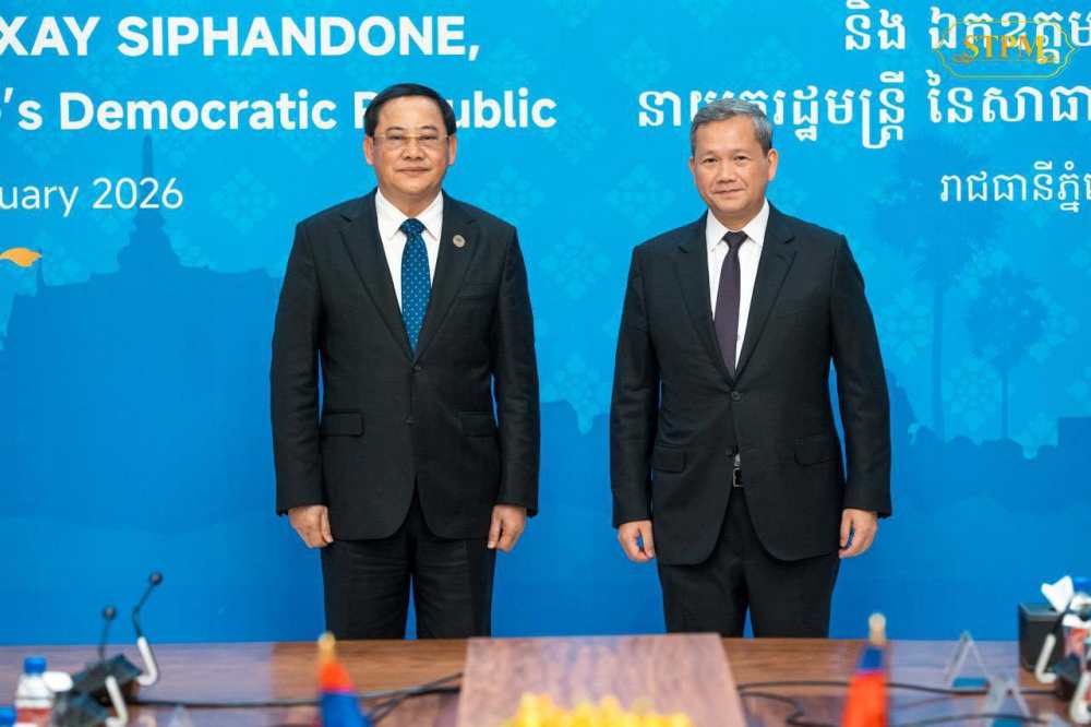 Cambodian Prime Minister Hun Manet met with Lao Prime Minister Sonexay Siphandone at the Solidarity Palace on February 7, 2026 during the latter’s visit to Phnom Penh for a trilateral meeting of party leaders from Cambodia, Laos and Vietnam.