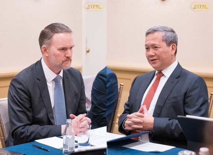 Washington, D.C., February 19 (AseanAll) — On the afternoon of 18 February 2026, HUN Manet, Prime Minister of the Kingdom of Cambodia, held a working discussion with Ambassador Jamieson Greer, United States Trade Representative, while leading the Royal Government of Cambodia delegation to the inaugural meeting of the Board of Peace in Washington, D.C., United States.