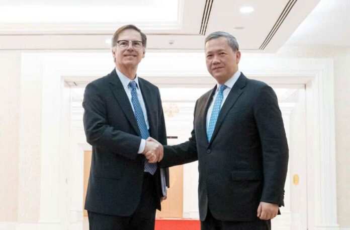 During the meeting, the Vice President of the World Bank expressed his sincere appreciation to HUN Manet for receiving him and his delegation, and conveyed his pleasure at meeting the Prime Minister once again. He commended Cambodia’s progress and expressed support for the Royal Government’s economic development goals aimed at transforming Cambodia into a high-income country by 2050.