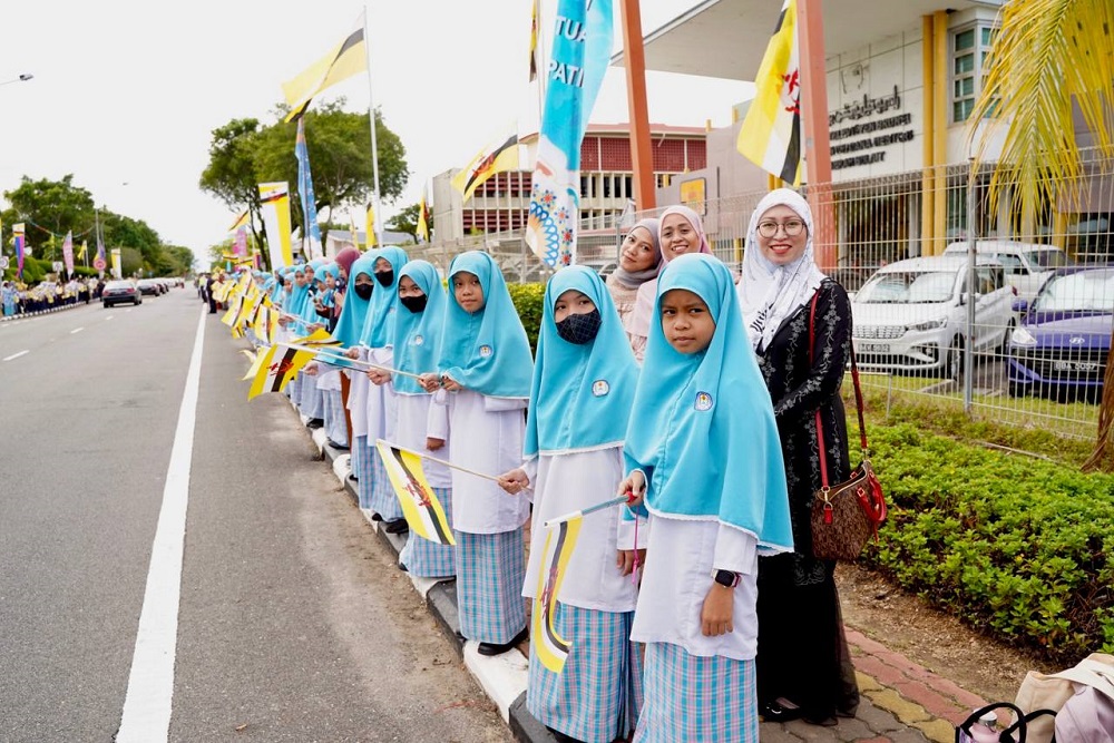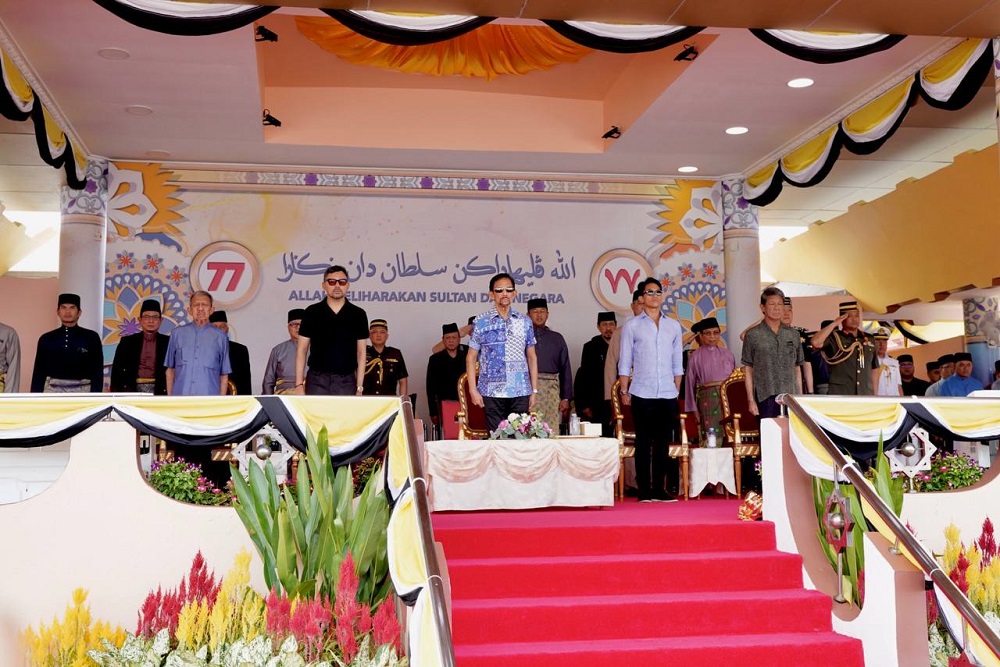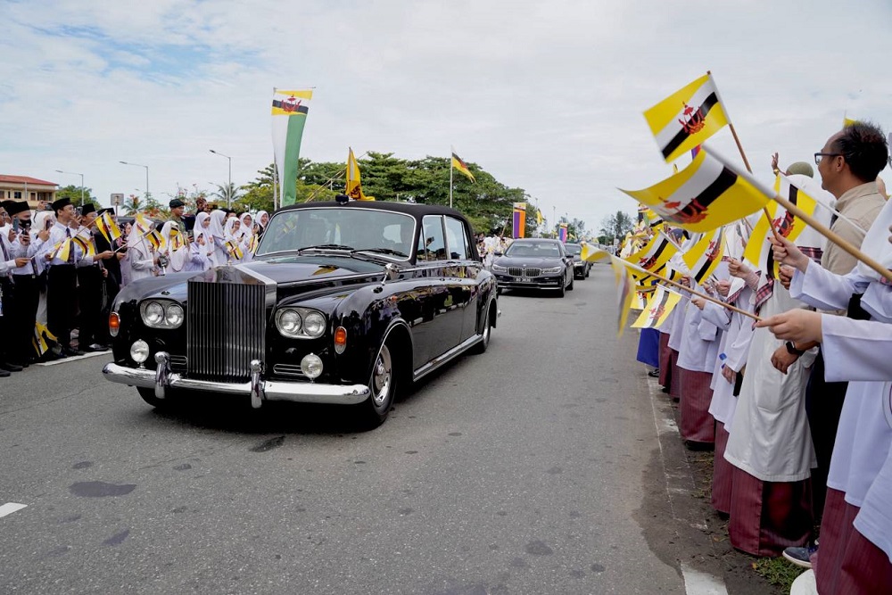 The monarch was accompanied by His Royal Highness Prince Haji Al-Muhtadee Billah, the Crown Prince and Senior Minister at the Prime Minister’s Office, His Royal Highness Prince ‘Abdul Mateen, His Royal Highness Prince Haji Sufri Bolkiah and His Royal Highness Prince Haji Jefri Bolkiah.