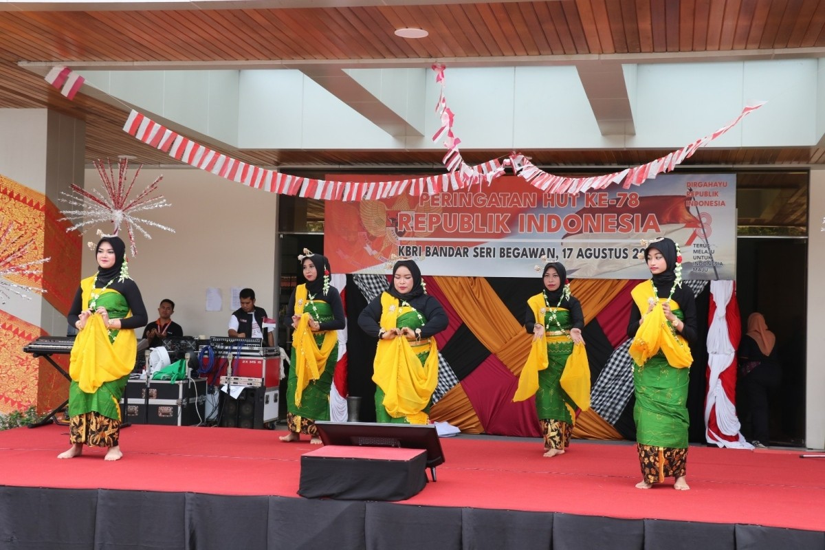Cheers of joy also coloured traditional August competitions such as tug-of-war and children's competitions. To enliven the atmosphere, an entertainment stage was held featuring regional dances and arts, bands performing popular songs, karaoke, and folk music by Indonesian community groups in Brunei. This activity also featured an internal radio podcast during the activity and the distribution of attractive door prizes.