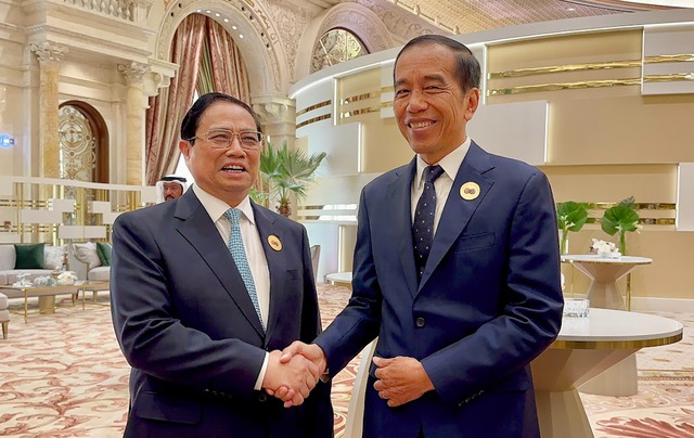 Vietnamese Prime Minister Pham Minh Chinh (left) meets with Indonesian President Joko Widodo in Riyadh, Saudi Arabia, October 20, 2023. Photo: VGP