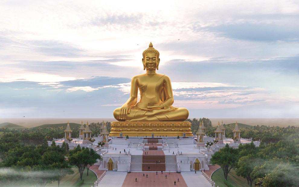 According to Cambodia state news agency AKP, the President of Sokha Hotel, Neak Oknha Sok Kung, initiated the construction of the 108-metre-tall Buddha statue, which was estimated to cost about US$60 million to worship the enlightening teachings of Lord Buddha.